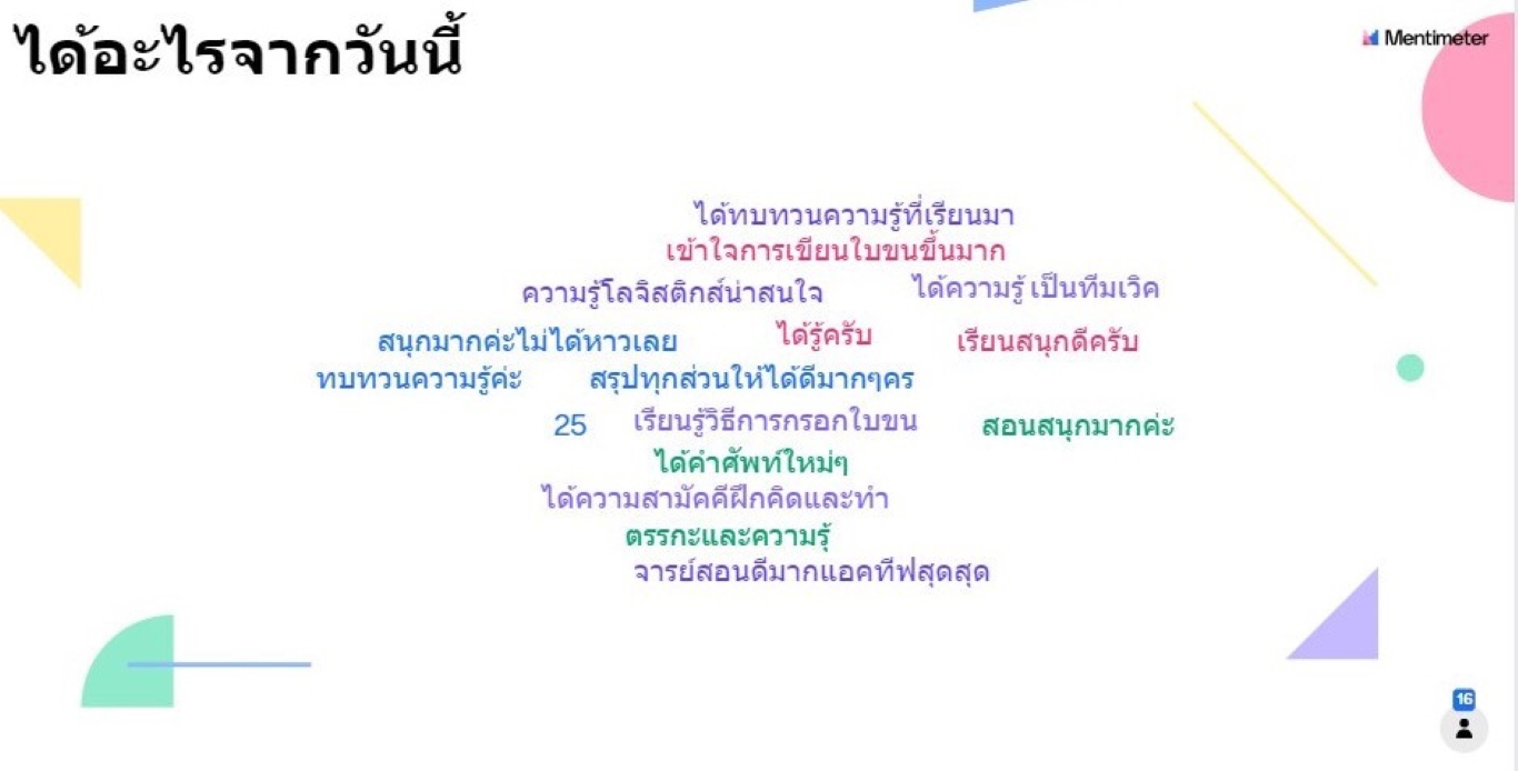 ซึ่งการอบรมนอกจากจะภาคความรู้แล้วยังมีกิจกรรม Active Learning ให้ผู้เข้าอบรมที่ผ่านการคัดเลือกจากกรมพัฒนาฝีมือแรงงาน ได้ฝึกปฎิบัติจริงตาม แนวทางการสอนของคณะโลจิสติกส์และซัพพลายเชน ที่มุ่งเน้นการเรียนรู้จากการฝึกปฏิบัติจริง |