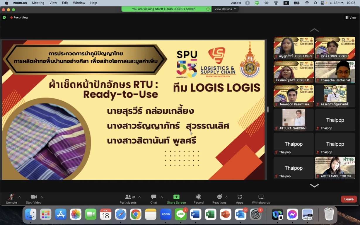 โลจิสติกส์ศรีปทุม คว้ารางวัลรองชนะเลิศอันดับสองการประกวดแผนธุรกิจผ้าทออ่างศิลา |