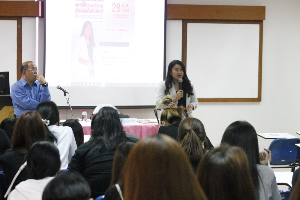 เมื่อวันอังคารที่ 28 มีนาคม 2566 พี่กะหล่ำ ณัฐณิชา สุขพร้อม ตำแหน่ง Senior Executive, Ocean Field Sales บริษัท Schenker (Thai) Co., Ltd. ในหัวข้อเปิดโลกอาชีพด้าน 'Sales Ocean Freight & Freight Forwarder' โดยศิษย์เก่าเล่าศิษย์ปัจจุบันรุ่นพี่โลจิสติกส์ ศรีปทุม ชลบุรี ได้มาถ่ายทอดความรู้ เล่าสู่น้องกับการใช้ชีวิต การทำงานประสบการณ์จริงให้กับน้องๆ โลจิสติกส์ ณ ห้อง 1408 ชั้น 14 อาคาร ดร.สุข-มาลินี พุคยาภรณ์