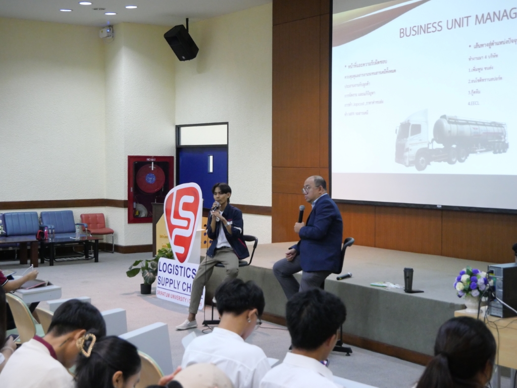 วันที่ 8 กุมภาพันธ์ 2568 คณะโลจิสติกส์และซัพพลายเชน มหาวิทยาลัยศรีปทุม วิทยาเขตชลบุรี จัดโครงการ Logistics Series พี่สอนน้อง ตอนพิเศษ เปิดเวทีต้อนรับวิทยากรรุ่นพี่ คุณณัฐนิกร (พี่บ๊อบ) ศรฤทธิ์ ศิษย์เก่าโลจิสติกส์ฯ LSC รุ่น 09 มหาวิทยาลัยศรีปทุม ชลบุรี ผู้มีประสบการณ์กว่า 7 ปีในวงการขนส่งและโลจิสติกส์