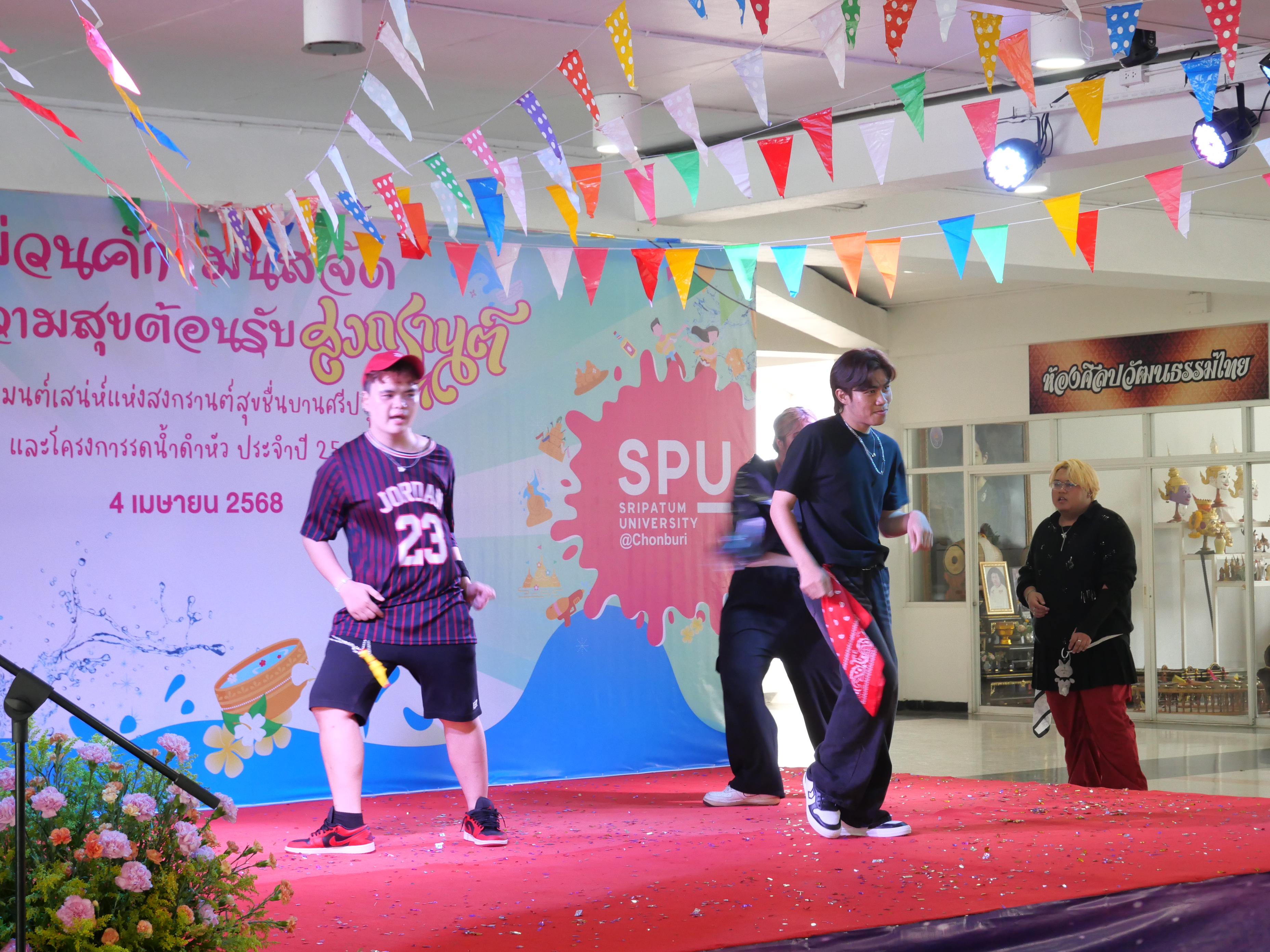 บรรยากาศเต็มไปด้วยสีสันและรอยยิ้ม นักศึกษา คณาจารย์ และบุคลากรต่างร่วมกันแต่งชุด Summer Colorful / ชุดลายดอก มาร่วมทำกิจกรรมสืบสานประเพณี อาทิ พิธีสงฆ์ ทำบุญตักบาตร, พิธีบวงสรวงสิ่งศักดิ์สิทธิ์ประจำมหาวิทยาลัย และกิจกรรมมนต์เสน่ห์แห่งสงกรานต์ สุขชื่นบาน ศรีปทุม เพื่อสร้างความสนุกสนาน ต้อนรับสงกรานต์ 2568