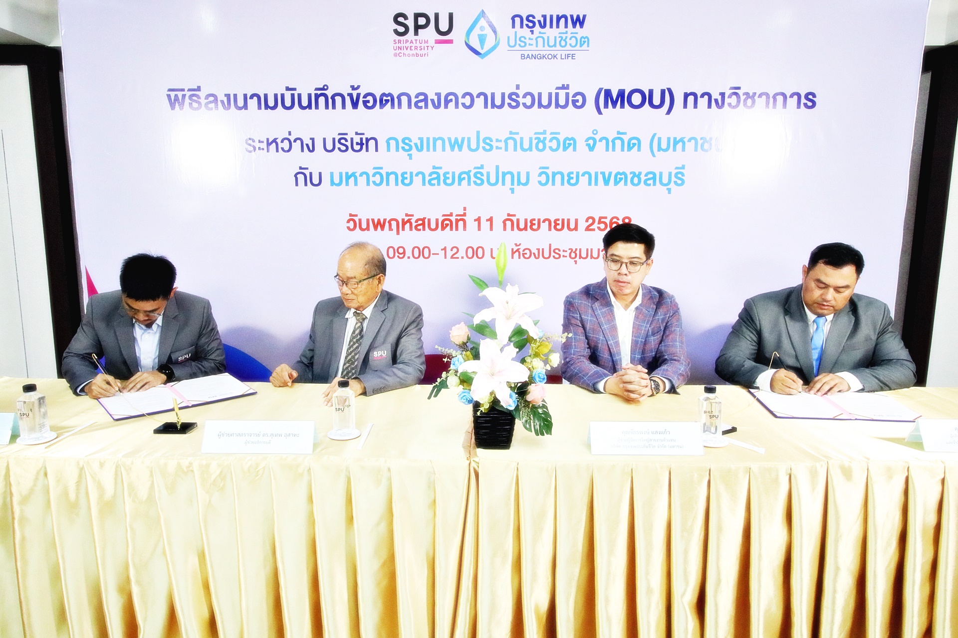 มหาวิทยาลัยศรีปทุม วิทยาเขตชลบุรี ลงนามบันทึกข้อตกลงความร่วมมือทางวิชาการกับบริษัท กรุงเทพประกันชีวิต จำกัด (มหาชน) เพื่อพัฒนาศักยภาพผู้จัดการตัวแทนให้มีทักษะเชิงผู้ประกอบการ เสริมสร้างองค์ความรู้ด้านการบริหารธุรกิจและภาวะผู้นำ ความร่วมมือนี้มุ่งเน้นการจัดอบรม บรรยาย และ Workshop โครงการอบรม Certified BLA & SPUC Leader 2025: Entrepreneurial Leaders of the New Era ณ ห้อง 606 มหาวิทยาลัยศรีปทุม ชลบุรี โดยมี ผู้ช่วยศาสตราจารย์ ดร.สุเทพ อุสาหะ ผู้ช่วยอธิการบดี ร่วมเป็นผู้แทนมหาวิทยาลัย และคุณจักรพงษ์ แสงแก้ว ผู้ช่วยผู้จัดการใหญ่สายงานตัวแทน บริษัท กรุงเทพประกันชีวิต จำกัด (มหาชน) เข้าร่วมพิธีเปิดอย่างเป็นทางการเพื่อสร้างแนวคิดเชิงนวัตกรรมและการบริหารจัดการอย่างยั่งยืน ถือเป็นอีกก้าวสำคัญในการบูรณาการองค์ความรู้ระหว่างภาคการศึกษาและภาคธุรกิจ เพื่อสร้างประโยชน์เชิงรูปธรรมต่อสังคม พิธีเปิดได้รับเกียรติจาก ดร. ชัยณรงค์ ชัยจินดา ผู้อำนวยการกลุ่มงานมาตรฐานการศึกษา กล่าวต้อนรับผู้เข้าร่วมอบรม พร้อมชี้ให้เห็นถึงความสำคัญของการพัฒนาทักษะเชิงผู้ประกอบการ ภาวะผู้นำ และการใช้เทคโนโลยี AI ในการเสริมสร้างศักยภาพผู้จัดการตัวแทนให้เป็น เจ้าของกิจการ ที่สามารถขับเคลื่อนธุรกิจประกันชีวิตได้อย่างยั่งยืน ความร่วมมือครั้งนี้ถือเป็นอีกหนึ่งก้าวสำคัญในการสร้างต้นแบบการทำงานร่วมกันระหว่างมหาวิทยาลัยและภาคธุรกิจ เพื่อเสริมสร้างบุคลากรที่มีคุณภาพ ยกระดับศักยภาพผู้จัดการตัวแทนสู่การเป็น ผู้ประกอบการธุรกิจรุ่นใหม่ ที่สามารถสร้างทีม สร้างแบรนด์ และสร้างความยั่งยืนให้กับธุรกิจประกันชีวิตไทยต่อไป #ศรีปทุมชลบุรี #กรุงเทพประกันชีวิต #MOU #ความร่วมมือทางวิชาการ #พัฒนาศักยภาพ |