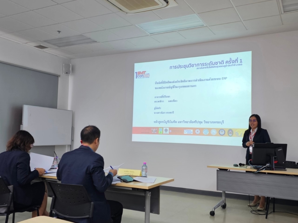 คณะบัญชี มหาวิทยาลัยศรีปทุม วิทยาเขตชลบุรี ร่วมประชุมวิชาการระดับชาติ ครั้งที่ 1 โดยมีนักศึกษาคณะบัญชี ร่วมนำเสนอผลงานบทความวิจัยจากรายวิชาวิจัยทางการบัญชี ได้แก่ นายภูเบศ ฝาเฟี้ยม และนางสาวนิภา ดวงชารี โดยมีดร.พรทิวา แสงเขียว และ อาจารย์สถาพร เพชรประดับ อาจารย์ประจำคณะบัญชี เป็นผู้ควบคุม วันอังคารที่ 17 ตุลาคม 2566 ณ หอประชุมพิบูลย์สุวรรณภูมิ สถาบันเทคโนโลยีแห่งสุวรรณภูมิ