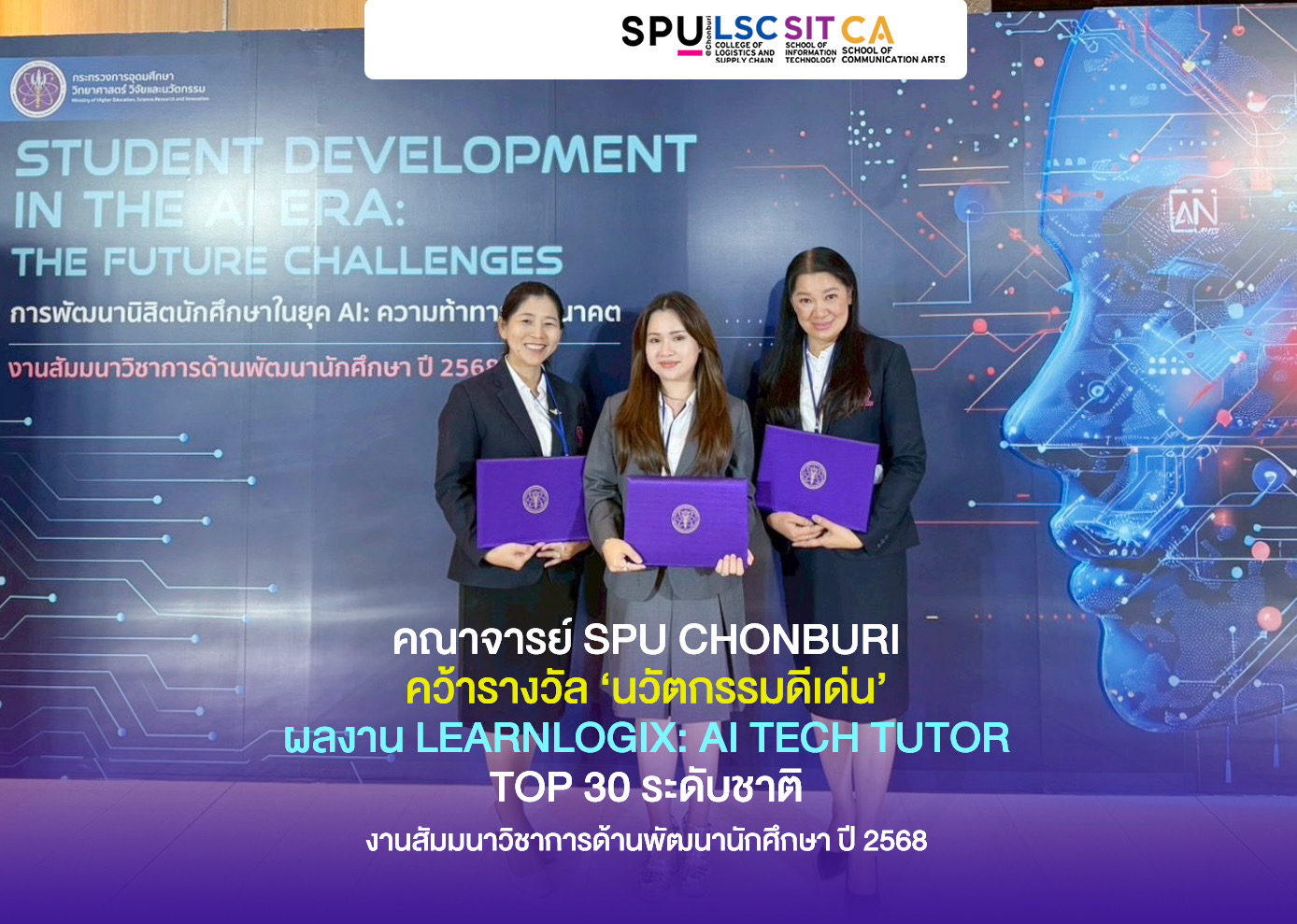 AI ก็ว่าเจ๋ง แต่ SPU ชลบุรีเจ๋งกว่า! จากชลบุรีสู่เวทีระดับชาติ! คว้ารางวัลนวัตกรรม AI ติดท็อป 30 ของประเทศ ด้วยผลงาน LEARNLOGIX: AI TECH TUTOR