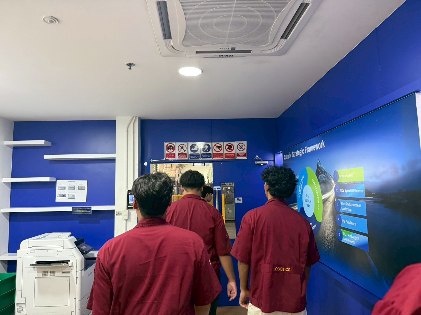 นอกจากนี้ นักศึกษายังมีโอกาส พูดคุยกับผู้เชี่ยวชาญจาก Autoliv เพื่อสอบถามและแลกเปลี่ยนประสบการณ์ด้านการจัดการโลจิสติกส์ การวางแผนคลังสินค้า และการใช้เทคโนโลยีเพื่อเพิ่มประสิทธิภาพการทำงาน