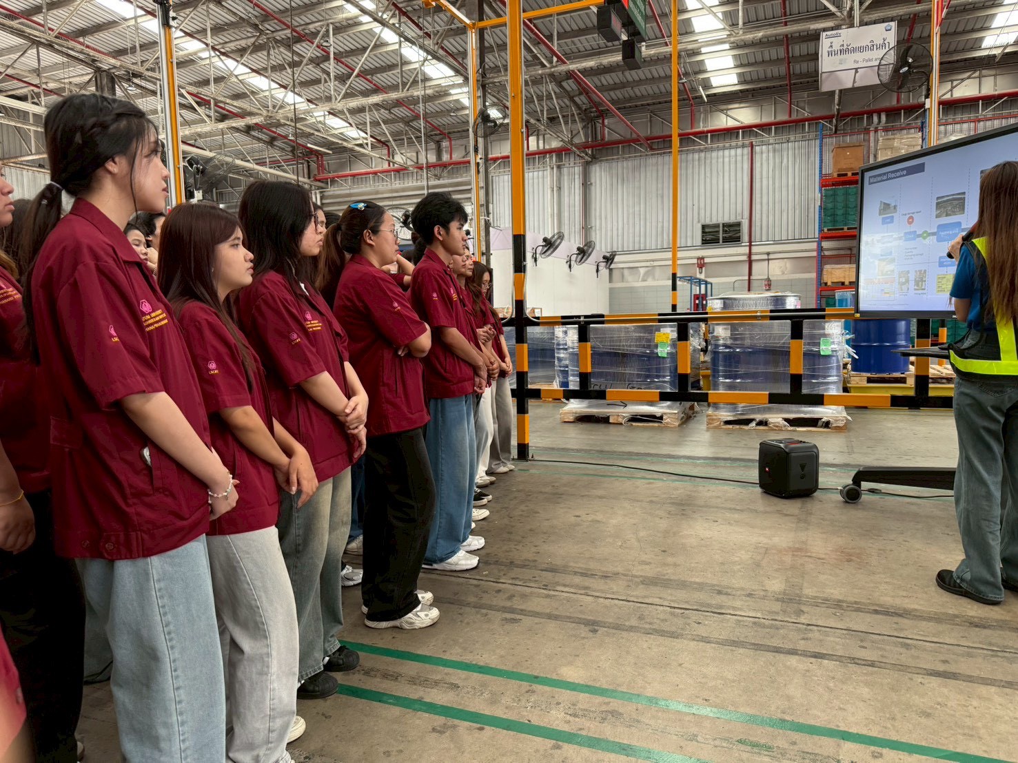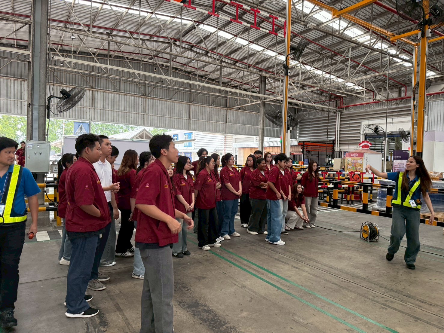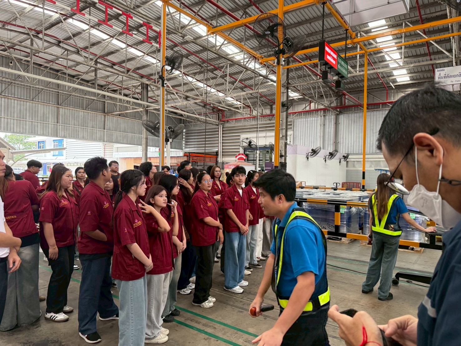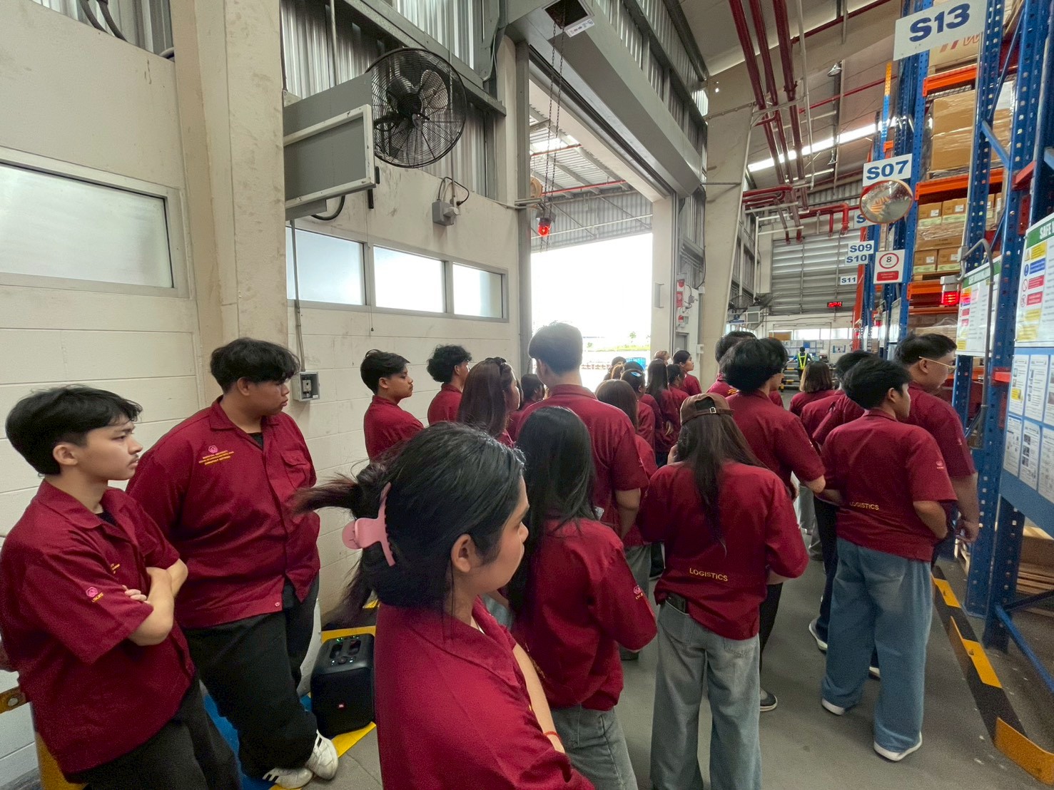 นักศึกษาได้ เยี่ยมชม Plant TCS Warehouse ศึกษาระบบเทคโนโลยีการจัดการคลังสินค้าและกระบวนการปฏิบัติงานจริงภายในคลัง ทั้งยังได้เรียนรู้แนวทางการบริหารจัดการคลังสินค้าอัจฉริยะ และนำความรู้ไปประยุกต์ใช้ในรายวิชาเรียน